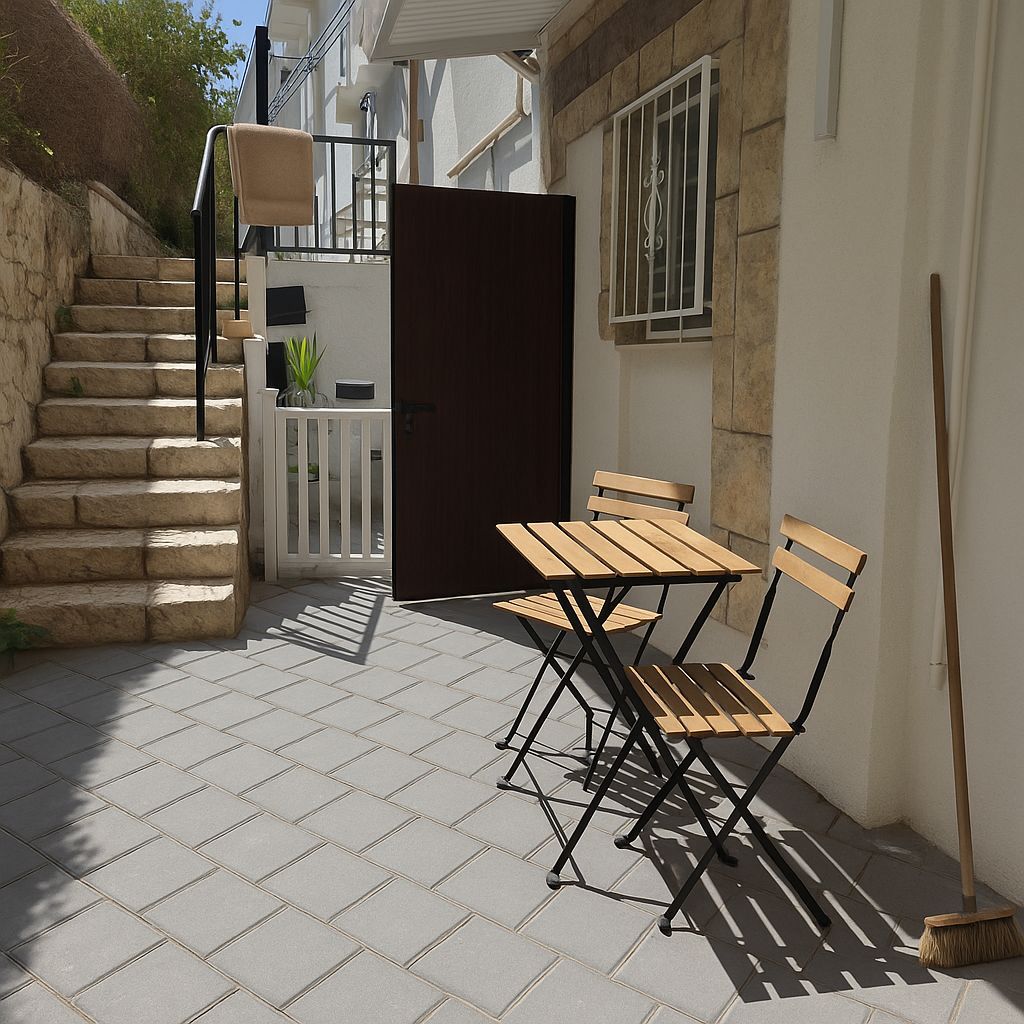 בניין משופץ, עם כניסה פרטית מצד הבניין.